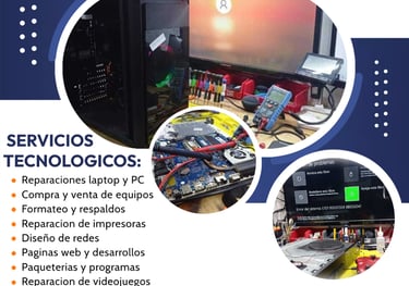 Taller de reparación a equipos de computo, impresoras, celulares y videojuegos.